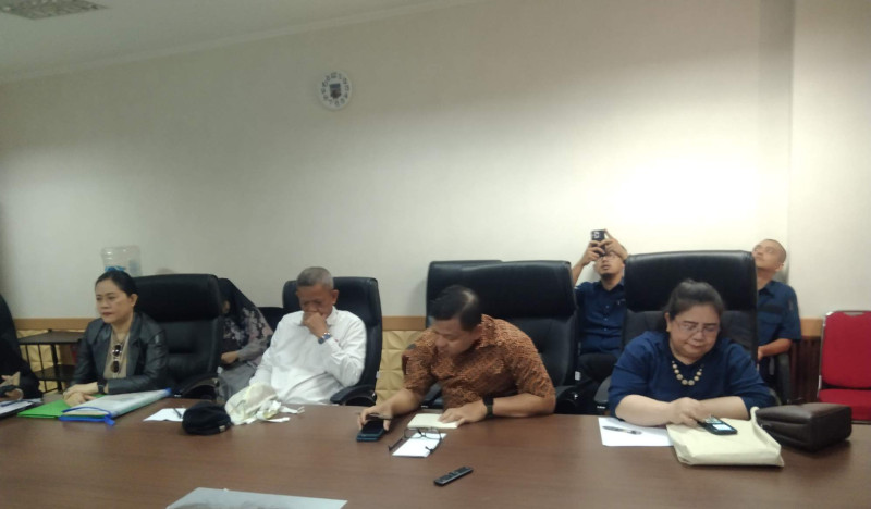 (Kiri-kanan, ke-4 dan ke-5), Danang S Winata dan Nelly yang hadir di pertemuan triparti yakni warga dan Pengelola Gedung Cinere Apartment Resort-PT Apcon, dan Disrumkim Kota Depok, di Kantor Dirumkim di Gedung Dibaleka, Balai Kota Depok, Jawa Barat, Rabu (4/3/2026). [WAHANANEWS.CO / Hendrik Raseukiy]