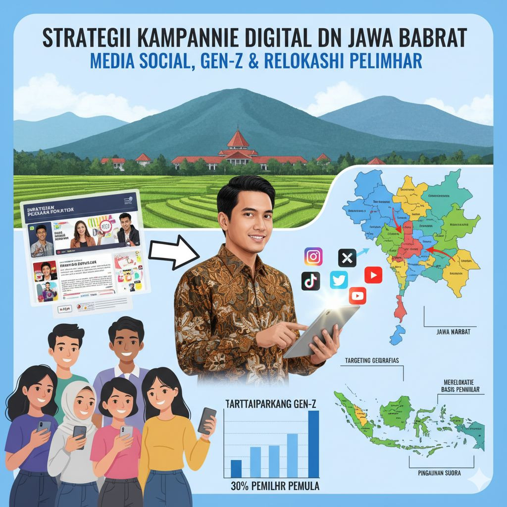 Generasi Z dan milenial) menjadikan Jawa Barat medan prioritas untuk kampanye digital. Hasil survei dan studi lokal menunjukkan pasangan tertentu (mis. Dedi Mulyadi-Erwan) unggul signifikan di polling, namun ada segmen besar pemilih yang belum mantap sehingga efisiensi digital untuk menggaet swing voters menjadi sangat berharga.
