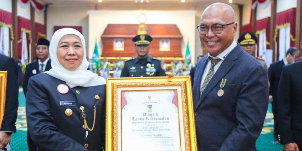 Penghargaan bergengsi tersebut diserahkan berdasarkan Keputusan Gubernur Jawa Timur, sebagai bentuk apresiasi atas jasa dan prestasi luar biasa Akhmad Munir dalam memajukan dunia pers nasional serta kontribusinya yang nyata terhadap pembangunan komunikasi publik dan penguatan nilai-nilai kebangsaan, khususnya bagi masyarakat Jawa Timur.