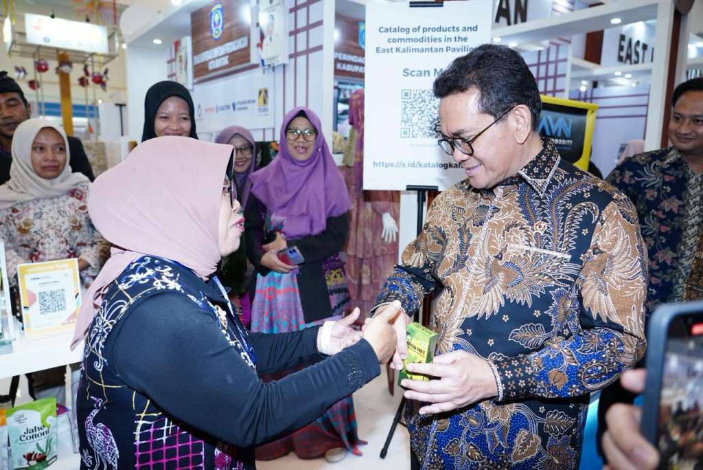 Peserta pameran yang disapa ini adalah Badan Usaha Milik Desa (BUMDes) Jaya Bersama yang produk unggulannya berhasil menarik perhatian Mendag Busan. Perwakilan BUMDes Jaya Bersama, Alyadi, yang bertugas di bagian pemasaran, mengaku terkejut sekaligus gembira atas kunjungan mendadak ini.