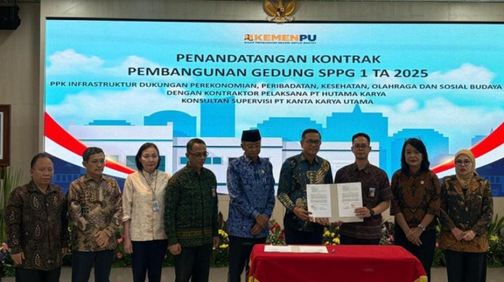 WAHANANEWS.CO, Jakarta - Kementerian Pekerjaan Umum (PU) meneken kerja sama pembangunan Satuan Pelayanan Pemenuhan Gizi (SPPG) atau dapur Makan Bergizi Gratis (MBG) bersama sejumlah kontraktor. Anggaran disiapkan PU sebesar Rp1,23 triliun untuk pembangunan SPPG di 152 lokasi.
