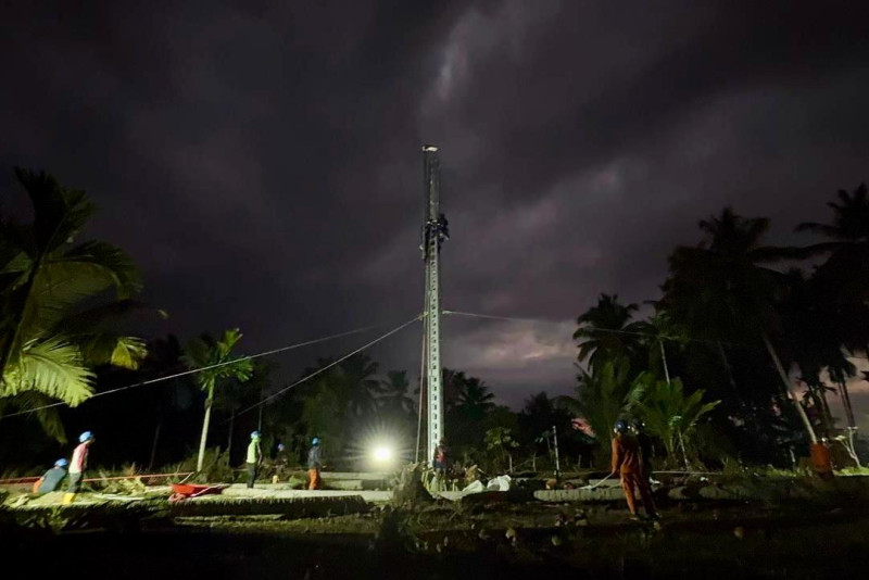 Para personel PLN gotong royong mengebut pembangunan emergency tower Saluran Udara Tegangan Tinggi (SUTT) di sekitar lokasi tower transmisi 150 kilovolt (kV) Bireuen - Arun yang roboh akibat bencana banjir bandang dan longsor akhir November lalu.