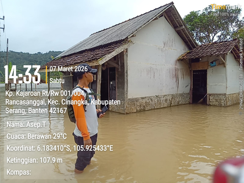 Petugas memantau kondisi banjir di wilayah Kabupaten Serang, Provinsi Banten, pada Sabtu (7/3/2026). [Foto: BPBD Kab. Serang]