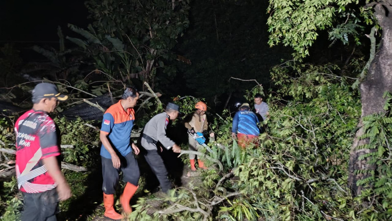 Peugas gabungan melakukan penanangan pohon tumbang di di Kabupaten Jember, Provinsi Jawa Timur, Jumat (6/3/2026). [Foto: BPBD Kab. Jember]