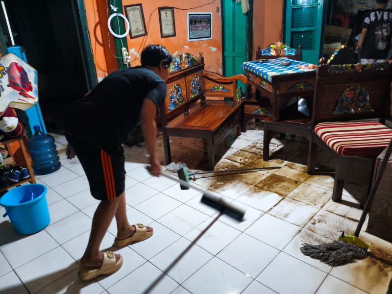 Warga membersihkan sisa genangan air pascabanjir di Kabupaten Jember pada Rabu (28/1/2026). [Foto: BPBD Kabupaten Jember]