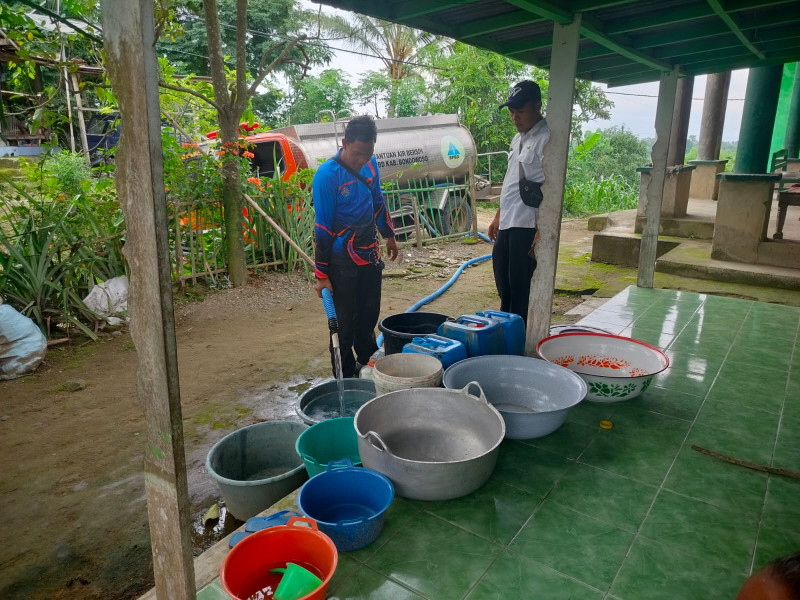 BPBD Kabupaten Bondowoso mendistribusikan air bersih bagi warga Desa Klekean, Kecamatan Botolinggo, Kabupaten Bondowoso yang dilanda kekeringan pada Rabu (28/1/2026). [Foto: BPBD Kabupaten Bondowoso]