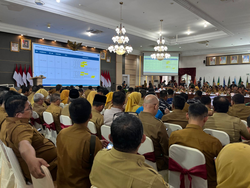 Suasana Rapat Koordinasi Percepatan Rehabilitasi dan Rekonstruksi yang dilaksanakan di Auditorium Istana Gubernur Sumatera Barat, Kota Padang, Selasa (13/1/2026).