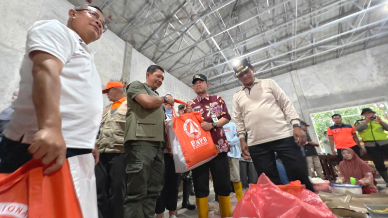 Dalam kesempatan tersebut, Letjen Suharyanto menyalurkan bantuan logistik dari BNPB kepada warga yang terdampak banjir.