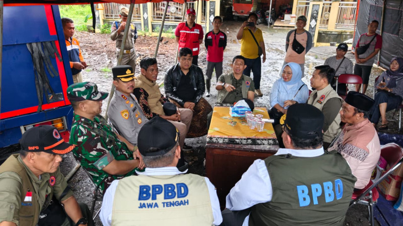 Usai memimpin rapat koordinasi penanganan banjir bersama Bupati Pati dan unsur Forkopimda, Kepala BNPB beserta rombongan melanjutkan kunjungan lapangan ke pos pengungsian di Balai Desa Sidoharjo, Kecamatan Pati.