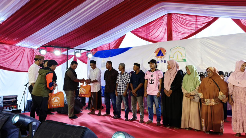 Penyerahan bantuan dilakukan secara simbolis oleh Kepala BNPB Letjen TNI Dr. Suharyanto bersama Bupati Aceh Timur Iskandar Usman Al-Farlaky kepada perwakilan warga.