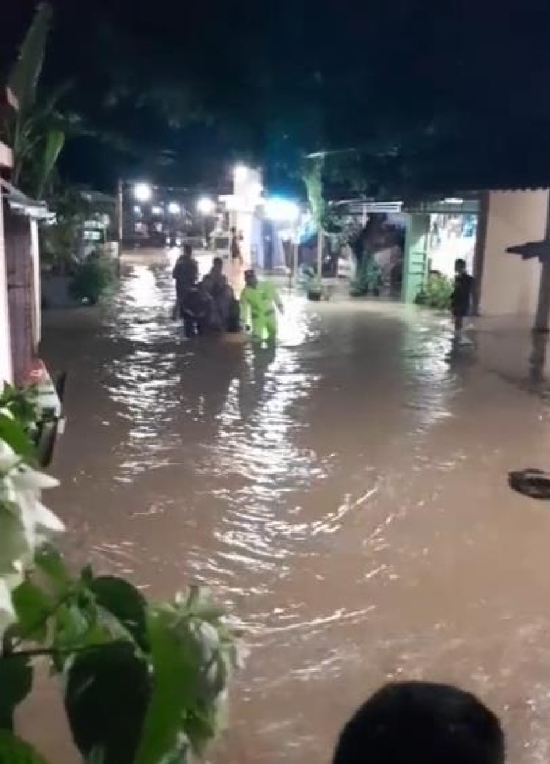 Hujan deras juga mengguyur Kecamatan Margasari, Kabupaten Tegal, pada Selasa (10/2/2026), yang menyebabkan Sungai Kumisik meluap.