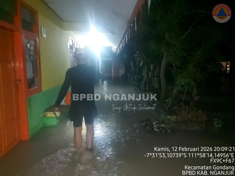 Di wilayah Jawa Timur, banjir juga terjadi di Kelurahan Balonggebang, Kecamatan Gondang, Kabupaten Nganjuk pada Kamis (12/2/2026) pukul 19.05 WIB.