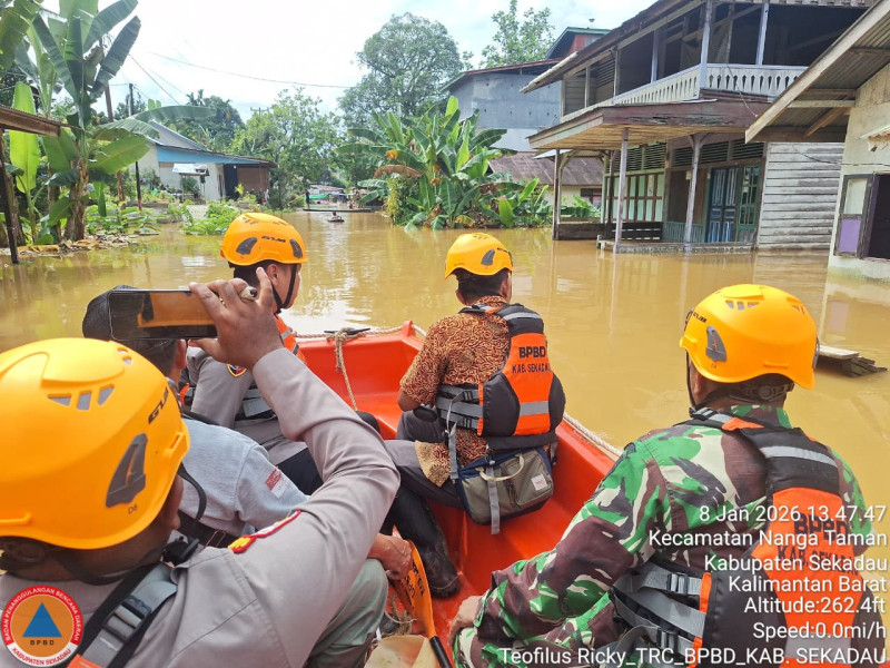 Petugas BPB Kab. Sekadau melakukan pendataan dan pemantauan lokasi terdampak banjir dan longsor, Kamis (8/1/2026). [Sumber: BPBD Kab. Sekadau].