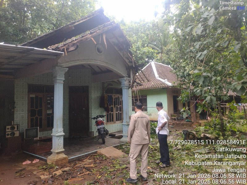 Selain hujan ekstrem, angin kencang kembali melanda Kabupaten Karanganyar pada Rabu (21/1/2026) sekitar pukul 16.30 WIB.