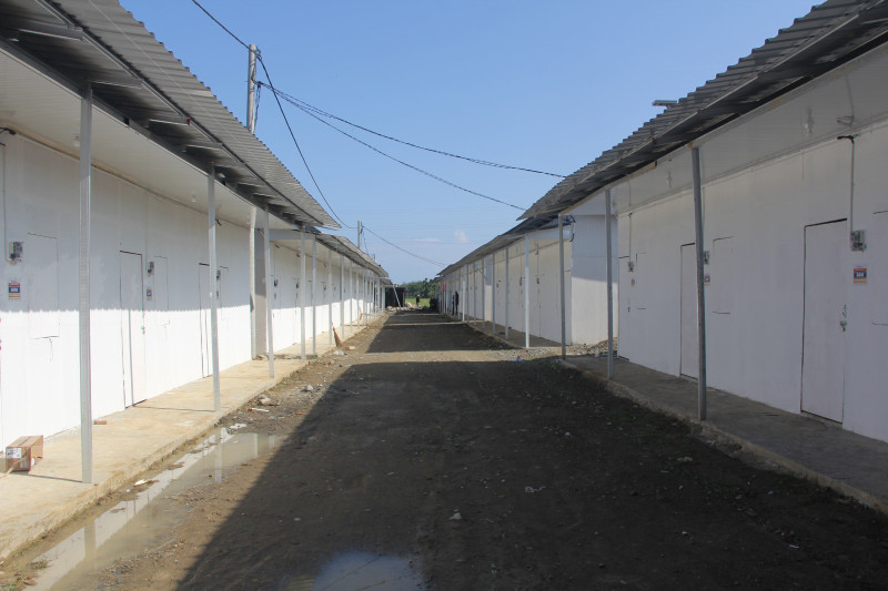 Bangunan Hunian Sementara (Huntara) bagi masyarakat terdampak bencana di Kabupaten Pidie Jaya, Aceh, Kamis (5/2/2026).