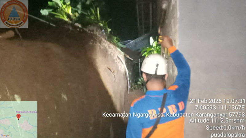 Bencana serupa juga terjadi di Provinsi Jawa Tengah. Banjir dan tanah longsor dilaporkan menerjang Desa Segorogunung dan Desa Kemuning, Kecamatan Ngargoyoso, Kabupaten Karanganyar pada Sabtu (21/2/2026).