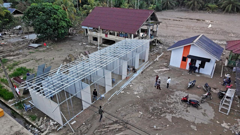 Pada tahap awal pemulihan, pembangunan huntara menjadi prioritas utama.