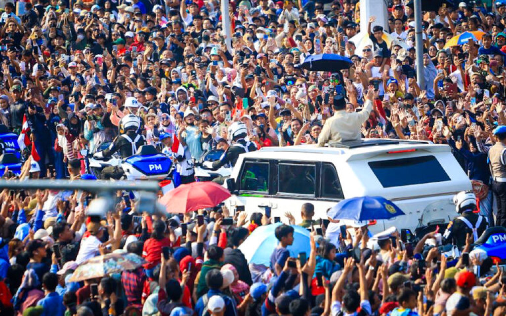 Presiden Prabowo pun tampak berdiri dan melambaikan tangan dari atas Maung, membalas sapaan masyarakat yang memadati jalan. Senyum dan gestur hangatnya membuat suasana semakin hidup, mencerminkan karakter kepemimpinan yang dekat dengan masyarakat.