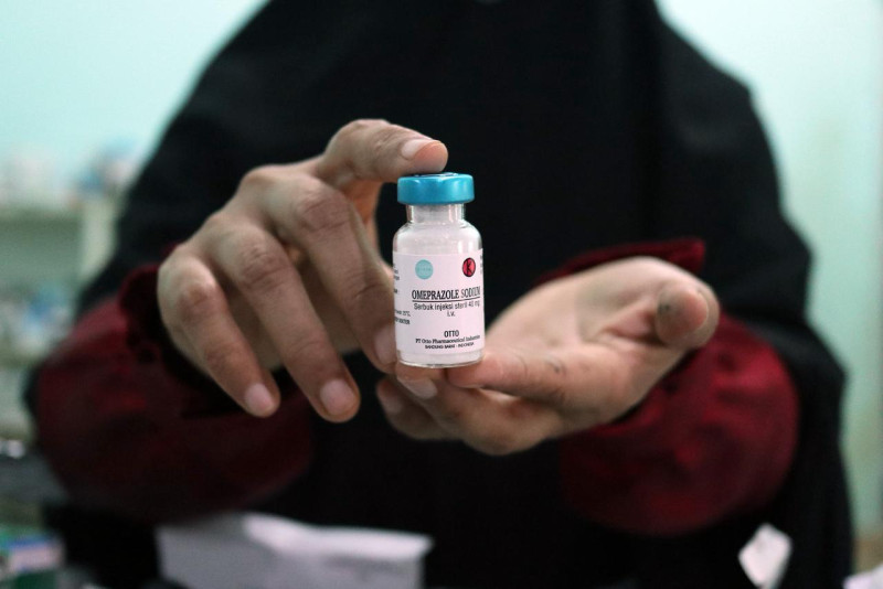 Apoteker menunjukkan salah satu obat di ruang farmasi RSUD Muda Sedia, Aceh Tamiang, Kamis (8/1/2026).