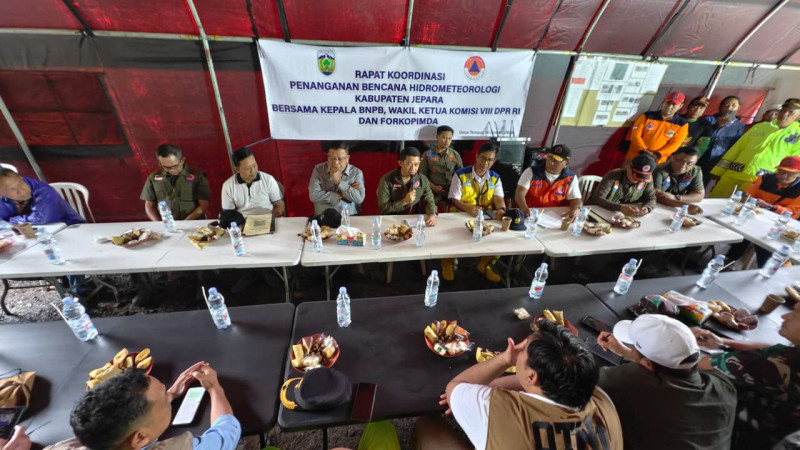 Kepala BNPB Letjen TNI Dr. Suharyanto S.Sos., M.M., memimpin Rapat Koordinasi Penanganan Bencana Hidrometeorologi di Kabupaten Jepara yang dihadiri Wakil Ketua Komisi VIII DPR RI dan Forkopimda, pada Jumat(16/1/2026).