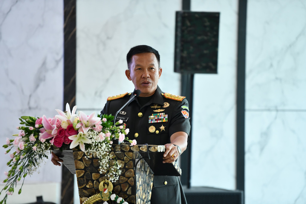 WahanaNews.co, Jakarta - Komandan Pusat Teritorial Angkatan Darat (Danpusterad) Letjen TNI Mochamad Syafei Kasno bersama Ketua Persit KCK PCBS Pusterad Ny. Indah Syafei menghadiri peringatan Hari Ulang Tahun ke-80 Persit Kartika Chandra Kirana Tahun 2026. Kegiatan tersebut berlangsung di Aula Gajah Mada Mapusterad, Jl. Setu Cipayung, Jakarta Timur, Selasa (28/4/2026).